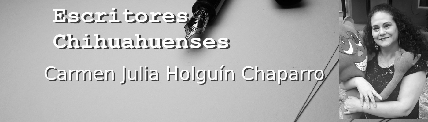 Carmen Julia Holguín Chaparro nació en Hidalgo del Parral, Chihuahua, México. Doctora en Literatura Hispanoamericana por la Universidad de Nuevo México. Es Consejera de estudiantes de licenciatura con especialidad en español y Coordinadora de los Niveles de Español Intermedio. Imparte clases de literatura, cultura hispanoamericana y escritura creativa, entre otras, en el Departamento de Español y Portugués, de la misma universidad. Junto a su trabajo académico, escribe cuento y poesía: A tu prójimo amarás (Poesía, 2008) El que tenga oídos… (Poesía, 2014), La Oviedo rifa (Cuentos, plaquete, 2015), …Y a pesar de las cicatrices (Poesía, plaquete, 2017) y Escucha (Poesía, 2020). Carmen Julia, además, ha estado trabajando como editora independiente y algunos de sus trabajos son: Tres mujeres al borde de la escritura (poesía y narrativa, 2015, EEUU), La mariposa del alma (2016, Colombia), Easy, Casual, Everyday Spanish (2018, EEUU) y Desnuda ofrenda/Naked Offering (2019, EEUU).